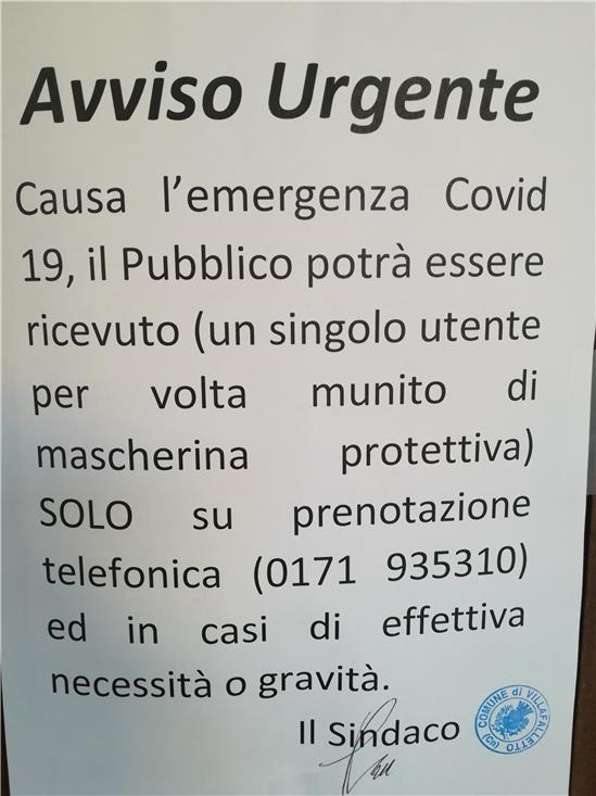 Causa l'emergenza Covid 19, il Pubblico potrà essere ricevuto (un singolo u ...