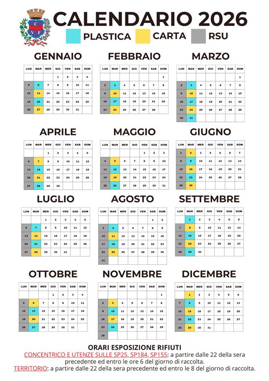 CALENDARIO RACCOLTA PORTA A PORTA 2026