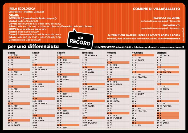 In allegato il calendario 2026 della raccolta di rifiuti del Comune di Villafalletto.