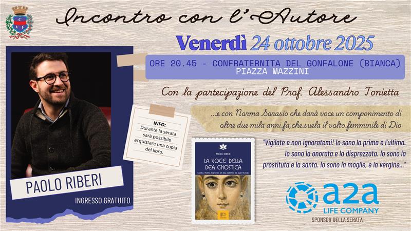 Il libro protagonista dell’incontro, "La voce della Dea Gnostica", di Paolo Riberi, nasce da un manoscritto riemerso dalle sabbie dell’Egitto e appartenente a un’antica raccolta di scritti apocrifi, lasciati ai margini dalla Chiesa delle origini, ci tramanda i versi in prima persona di Tuono, Mente Perfetta, un componimento poetico ricco di mistero.